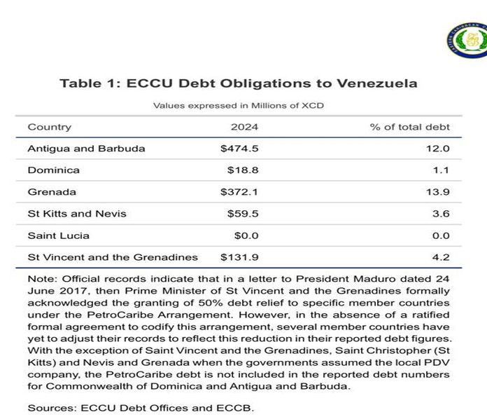 CASTRIES, St Lucia, (CNG Business) – Following US action in Venezuela and the repercussions to oil markets, pending social and economic impacts on the Caribbean, in particular OECS and CARICOM, the ECCU Regional Economic Aftershocks in Venezuela, table 1: ECCU debt obligation to Venezuela shows Saint Lucia at zero percent exposure – research, statistics and data analytics department report for January 2026.