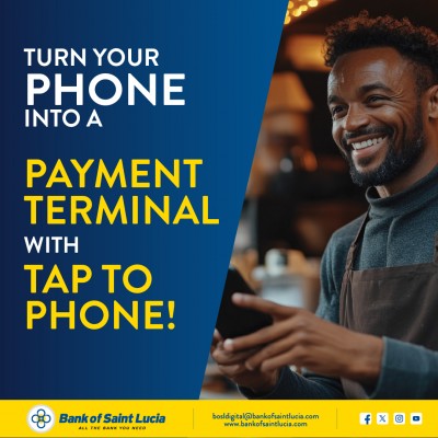 If you already have a merchant operating account with Bank of Saint Lucia, simply reach out to your Bank of Saint Lucia merchant representative to get started with Tap to Phone.